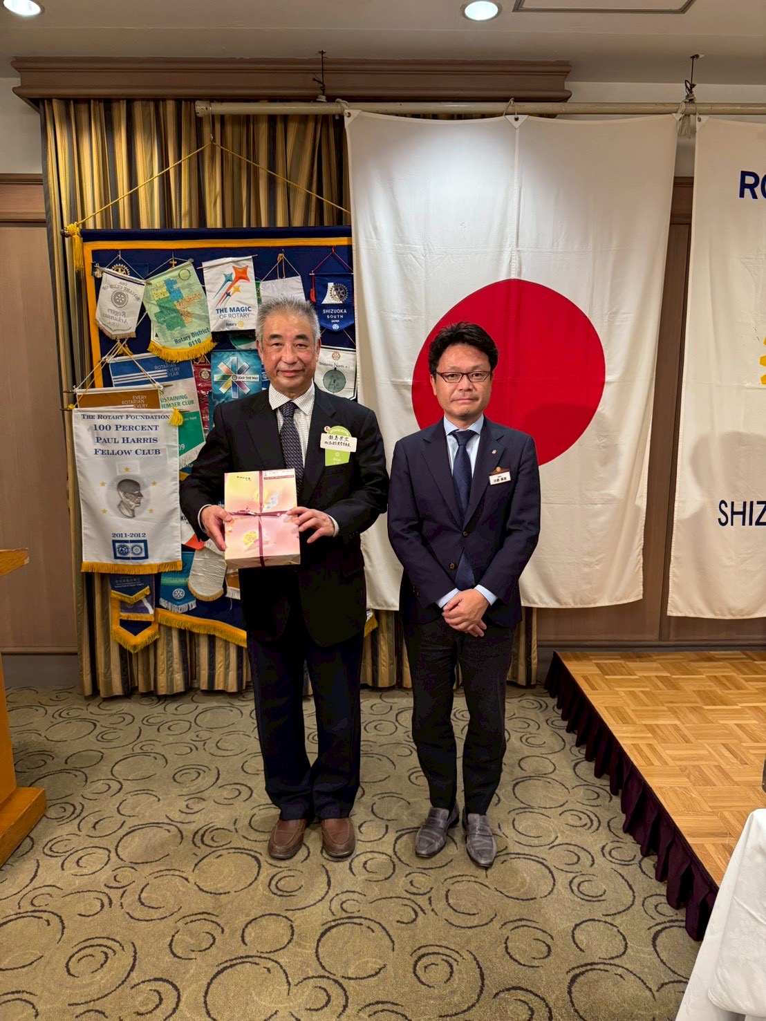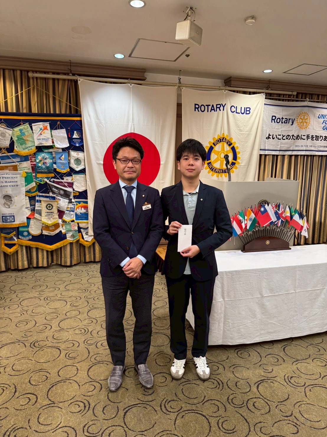 国際ロータリー第 2620 地区 2025-26年度 米山記念奨学委員会 委員長 飯島崇宏 様 米山記念奨学生 チー・ジュンユ君 |