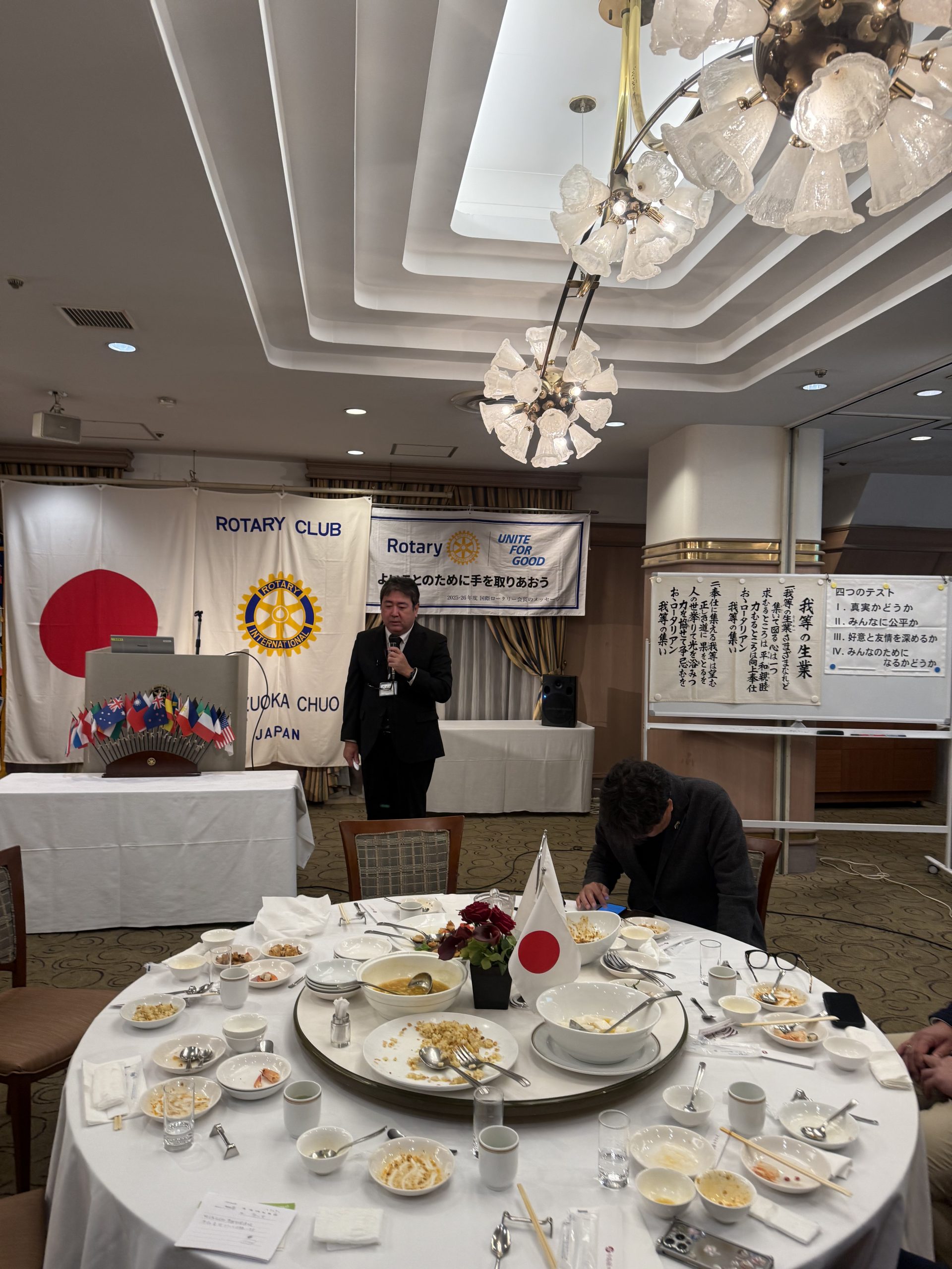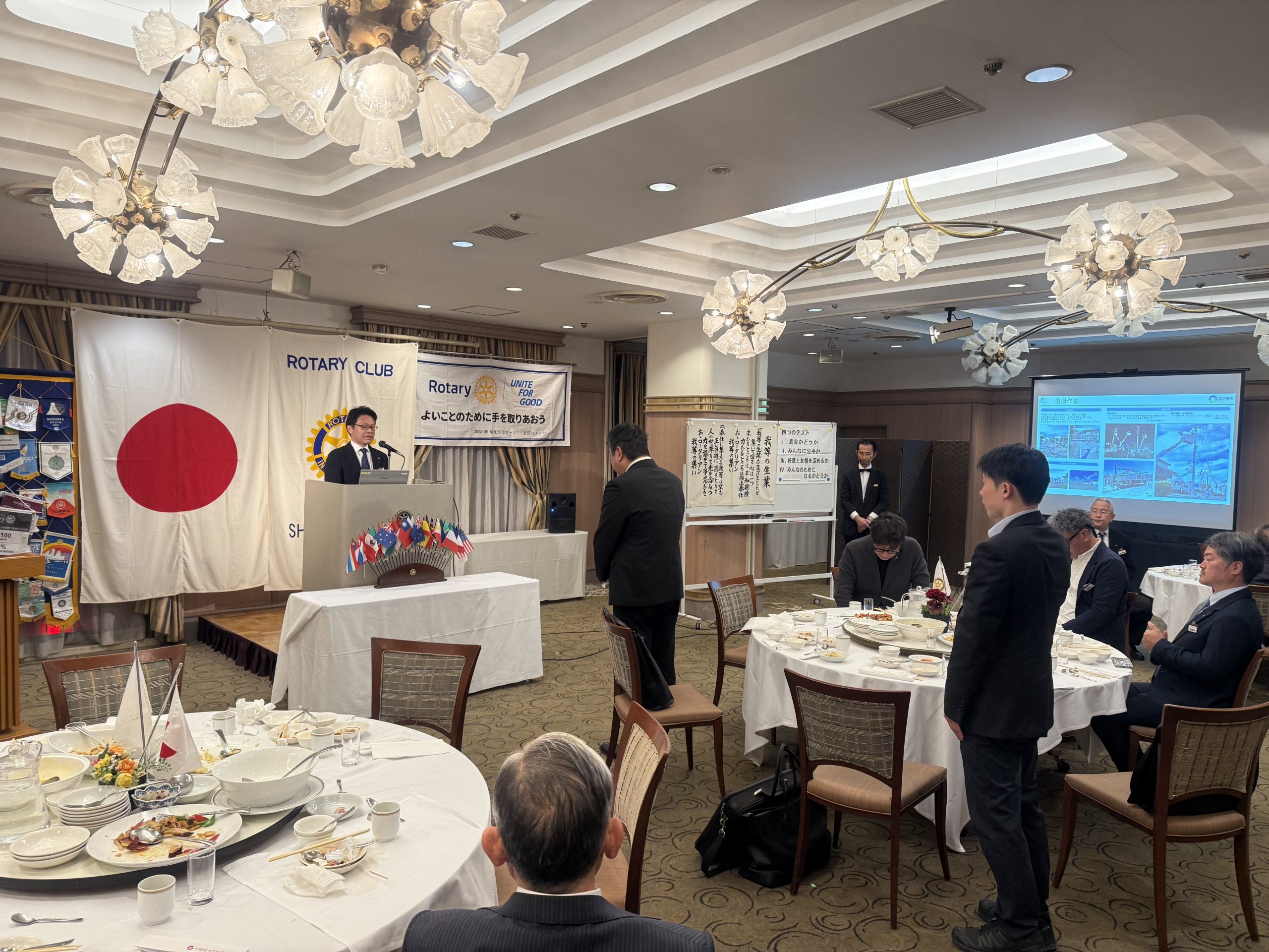 この会長幹事会は、来年度に向けた地区内の連携や準備を進めるうえで大変重要な会議であり会場は三笑亭にて開催されました。その場で、我が静岡中央ロータリークラブを代表して、南条会員がガバナー補佐として会の取り仕切りを立派に務めてくださいました。クラブを代表して、地区の大切な役割を担っておられることは、私たちにとって大変誇らしいことだと思っております。また当日は、依田会員が事務局長として、原川会員が事務局として運営を支えてくださり、さらに曽根田幹事、川島会員、橋本会員にも受付のお手伝いとしてご参加いただきました。それぞれのお立場で力を尽くしていただいたことに、心より感謝申し上げます。こうした場を通じて改めて感じますのは、来年度が始まる前から、すでにIMや合同奉仕をはじめとしたさまざまな準備が着実に始まっているということです。ロータリーの活動は、年度が始まってから動き出すのではなく、その前段階から多くの会員の皆さまのご尽力によって支えられているものだと、改めて実感いたしました。特に南条会員におかれましては、静岡中央ロータリークラブの代表として、今後も各種会議や打ち合わせに参加される機会が増えてまいります。そのご負担は決して小さなものではないと思います。だからこそ、南条会員お一人にお任せするのではなく、クラブ全体で支え、応援し、力を合わせていくことが大切だと感じております。ぜひ皆さまにも、今後さまざまな場面でお力添えをいただき、静岡中央ロータリークラブらしいチームワークで、来年度へ向けた準備をともに進めてまいりたいと思います。引き続き、皆さまのご理解とご協力をよろしくお願いいたします。本日もどうぞよろしくお願いいたします。